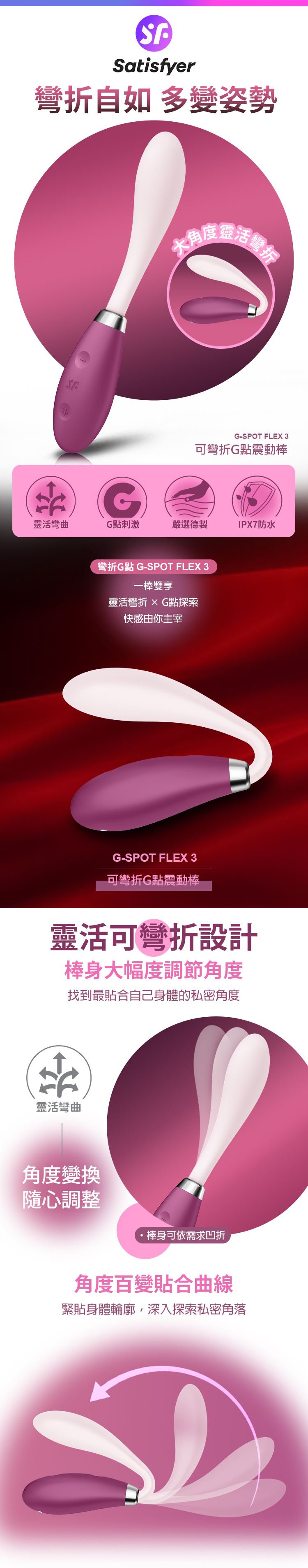 品名:Satisfyer|G-Spot Flex 3|可彎折G點震動按摩棒 粉